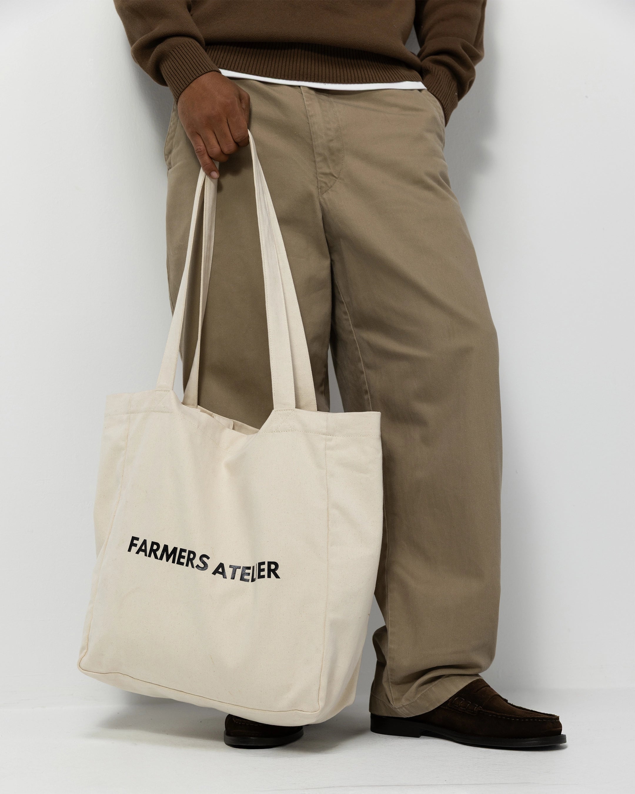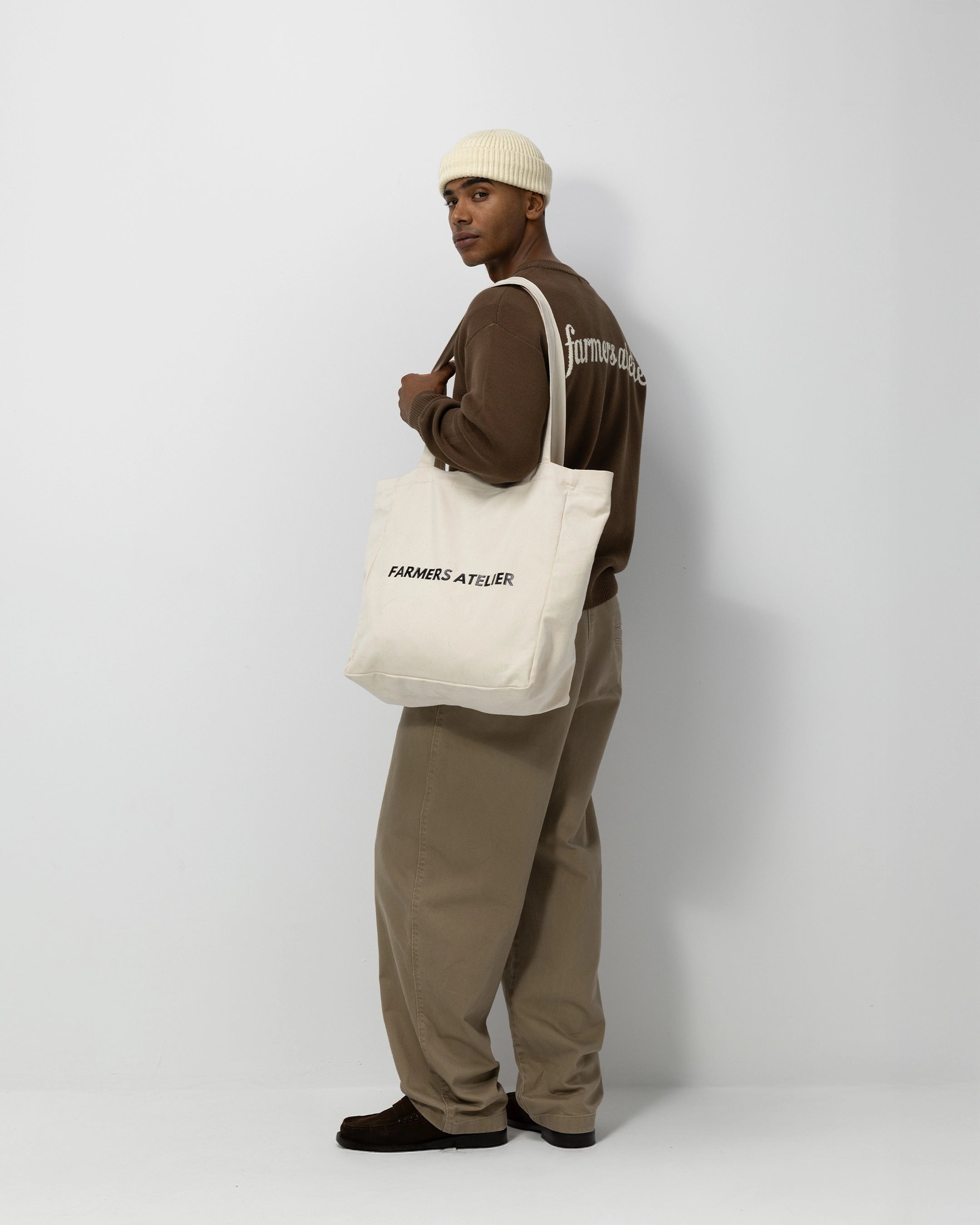Featuring the Farmers Atelier logo printed across the front, this over-the-shoulder tote reflects the brand’s understated aesthetic — simple, functional, and rooted in craftsmanship. Whether you’re heading to the market, studio, or city, this bag is designed to go wherever you do.