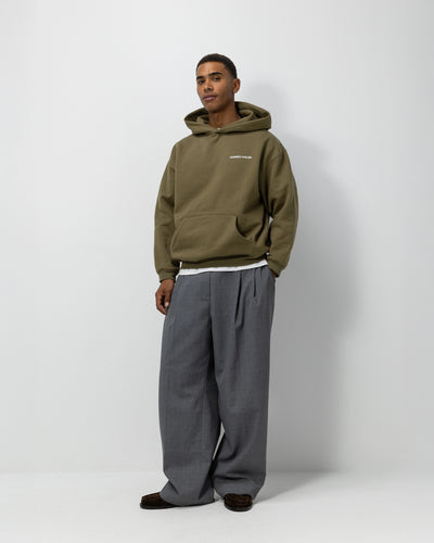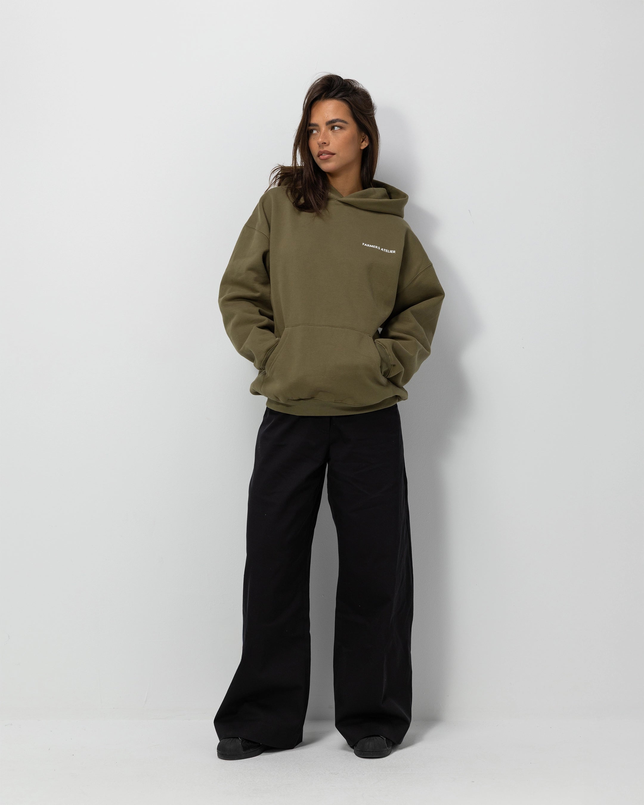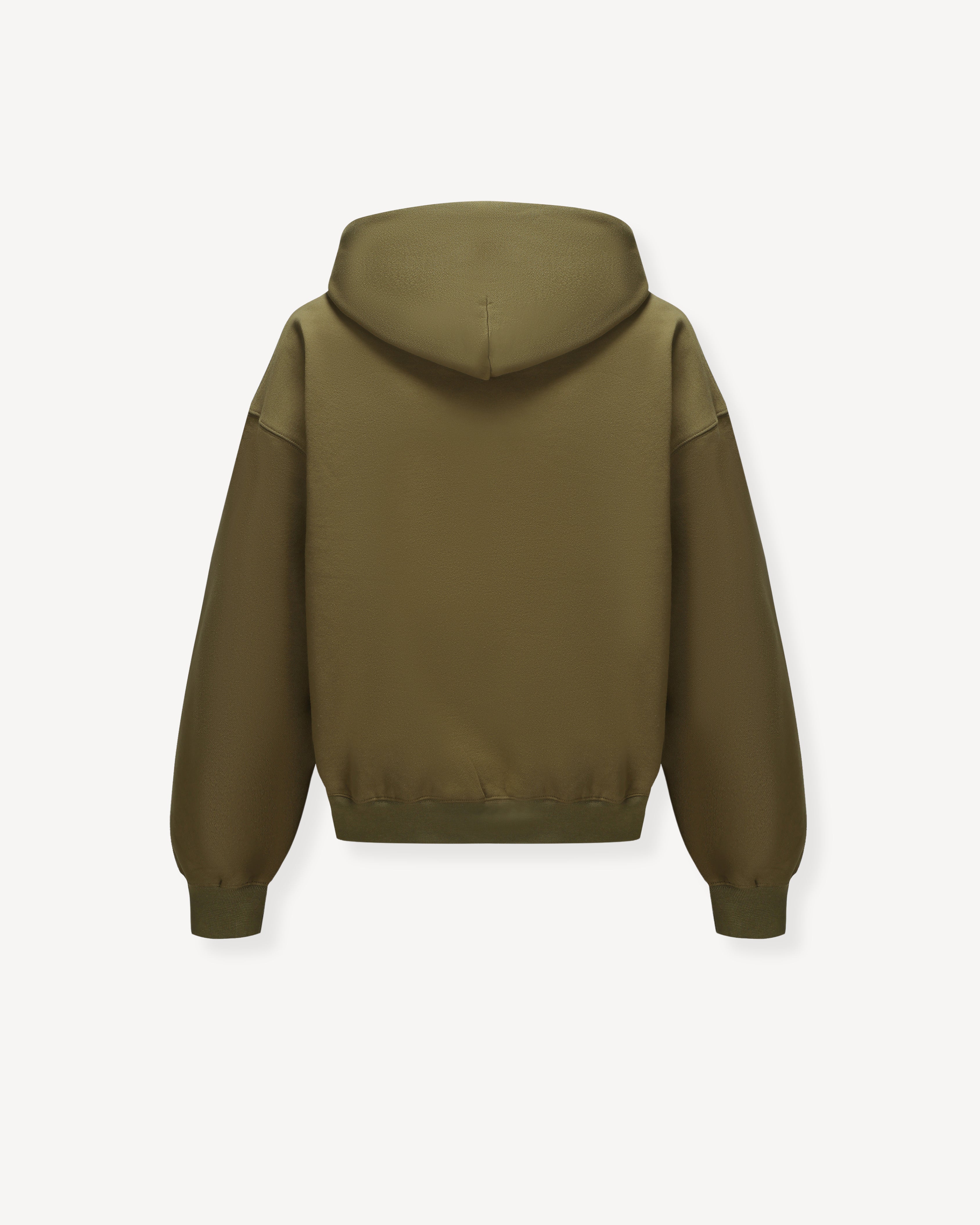 The Farmers Atelier Signature Hoodie in Olive brings a natural, grounded tone to a modern essential. Designed in a boxy, relaxed fit, it offers the perfect balance of structure and softness — a timeless piece that pairs effortlessly with any wardrobe.