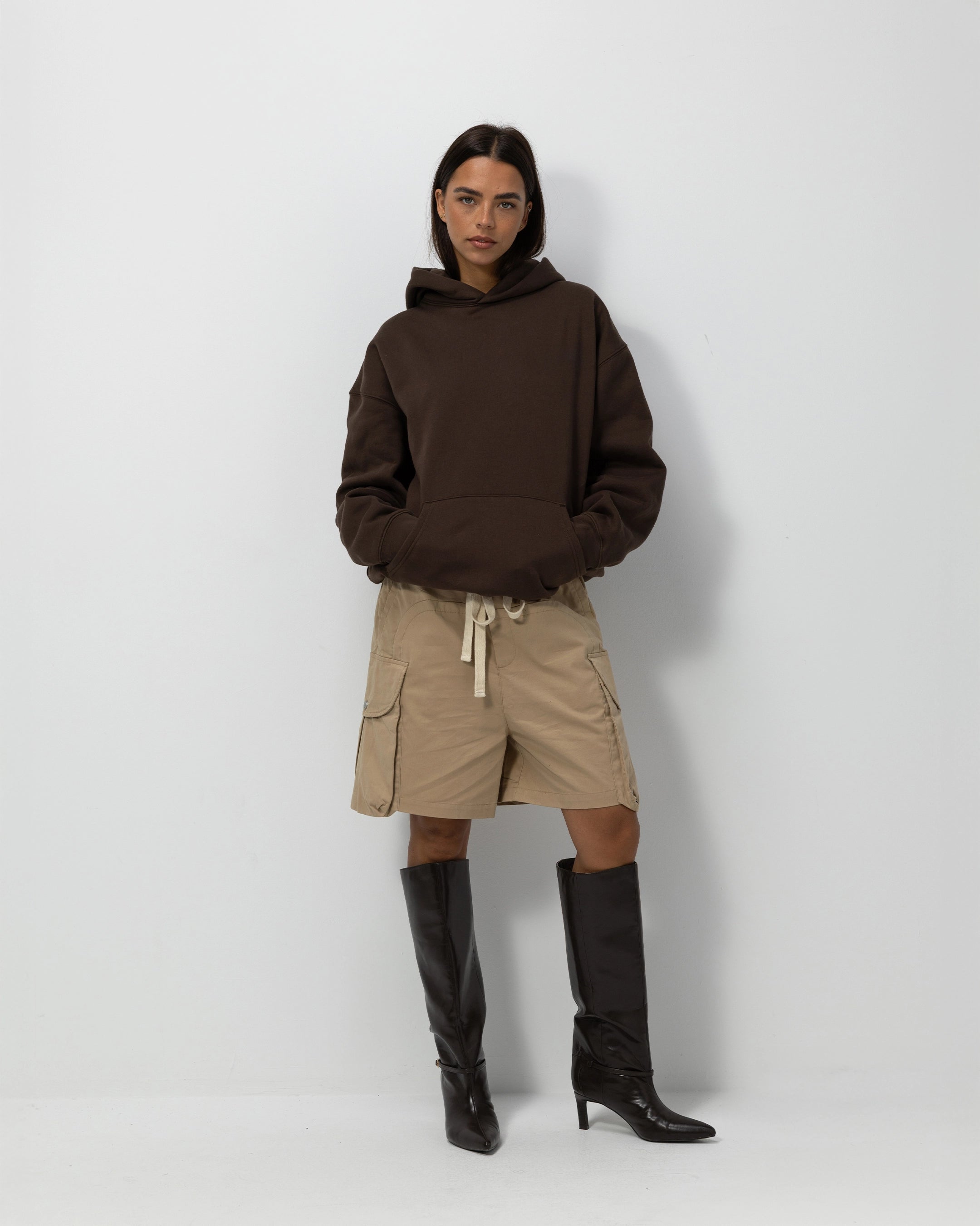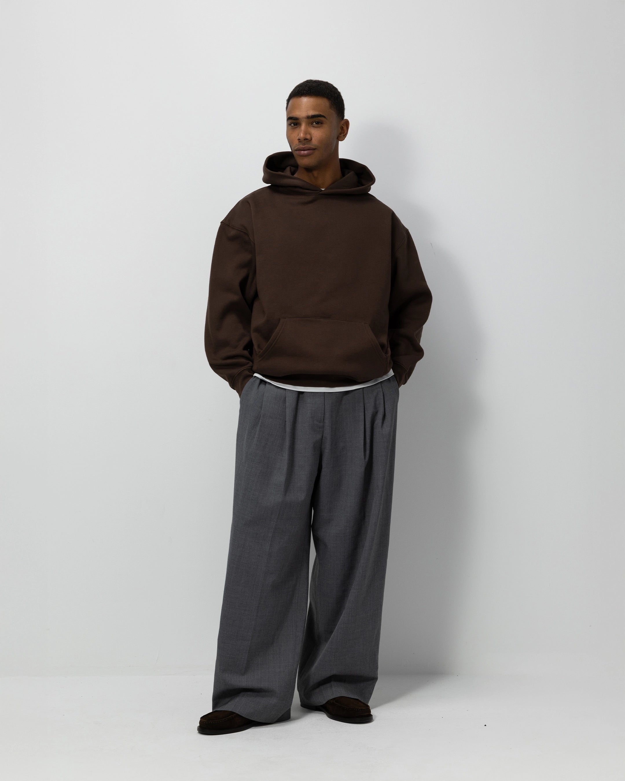 Pure simplicity, perfected. The Farmers Atelier Blank Hoodie in Brown focuses entirely on fit, fabric, and feel — completely plain, with no visible branding, allowing the quality to take center stage. Designed in a boxy, relaxed silhouette, it offers a timeless shape that feels both structured and effortless.